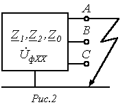 В тех случаях, когда трехфазная цепь в целом симметрична, а несимметрия носит локальный характер (местное короткое замыкание или обрыв фазы, подключение несимметричной нагрузки), для расчета удобно применять теорему об активном двухполюснике.