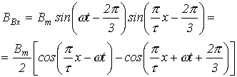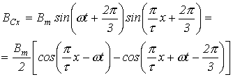 С учетом гармонически изменяющихся фазных токов для мгновенных значений этих величин при сделанном ранее допущении о линейности зависимости индукции от тока можно записать