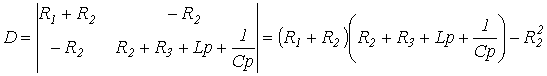 При составлении характеристического уравнения на основе выражения главного определителя число алгебраических уравнений, на базе которых он записывается, равно числу неизвестных свободных составляющих токов. Алгебраизация исходной системы интегро-дифференциальных уравнений, составленных, например, на основании законов Кирхгофа или по методу контурных токов, осуществляется заменой символов дифференцирования и интегрирования соответственно на умножение и деление на оператор р. Характеристическое уравнение получается путем приравнивания записанного определителя к нулю. Поскольку выражение для главного определителя не зависит от правых частей системы неоднородных уравнений, его составление можно производить на основе системы уравнений, записанных для полных токов.