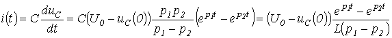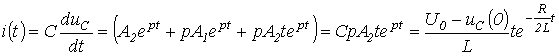 Для апериодического характера переходного процесса после подстановки (2) и (3) в соотношение (1) можно записать