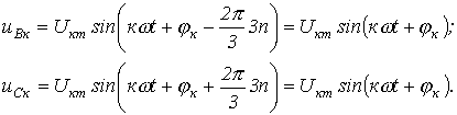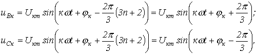 , для к-х гармонических напряжений фаз В и С соответственно можно записать:
