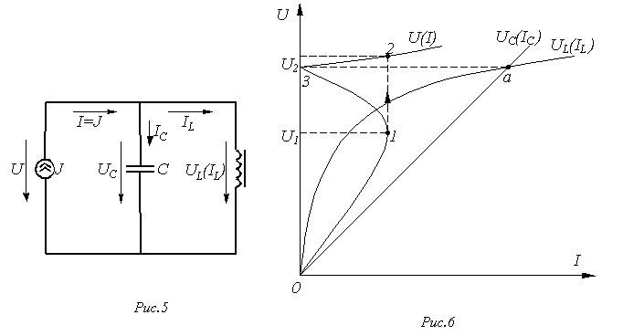 Феррорезонанс в параллельной цепи рассмотрим на основе схемы на рис. 5. Для этого, как и в предыдущем случае, строим (см. рис. 6) прямую