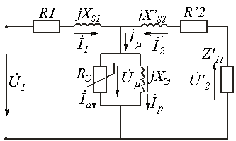 Основные соотношения, схема замещения и векторная диаграмма для трансформатора с ферромагнитным сердечником приведены в табл. 2.
