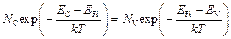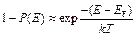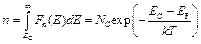 Обычно в полупроводниках разность Е–ЕF более чем в три раза превышает величину kT, поэтому единицей в знаменателе формулы (1.32) можно пренебречь. Тогда вероятность заполнения энергетических уровней в зоне проводимости будет равна
