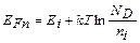 , то есть, чем выше концентрация доноров, тем меньше концентрация дырок. Если nn=ND, то из уравнения (3.11) можно определить положение уровня Ферми в электронном полупроводнике: