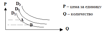 Сдвиг кривой спроса вправо означает увеличение спроса, сдвиг кривой влево – уменьшение спроса. Изменение спроса происходит под действием неценовых факторов (cхема 16)
