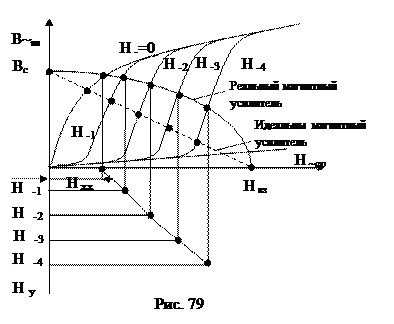 На рис 79 индукция Вс соответствует такому идеальному случаю, при котором все напряжение схемы приложено к рабочим обмоткам и для создания магнитного потока из сети потребляется малый ток.