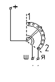При пуске движок реостата находится в положении (1), после пуска в положении (2).