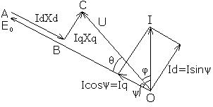 OB=Ucosθ, Ucosθ=E0–IsinψXd, откуда