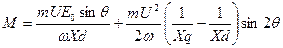 т.е. электромагнитная мощность состоит из основной и добавочной. Если машина неявнополюсная, где Xd=Xq, выражение электромагнитной мощности запишется: