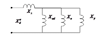 Зная соответствующие индуктивные сопротивления, можно определить токи внезапного короткого замыкания. Начальное действующее значение сверхпереходного тока короткого замыкания определится: