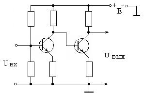 ДУ представляет собой балансный УПТ, с той разницей, что на оба входа относительно корпуса подаются два сигнала, разность которых является входным сигналом, а выходной сигнал снимается с одного из коллекторов, либо в фазе, либо в противофазе со входным сигналом.