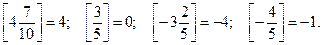 Целой частью числа а называется наибольшее целое число, меньшее или равное а. Приведем примеры нахождения целой части различных чисел: