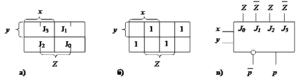 На основе булевых уравнений составляются таблицы истинности заданных функций и карты минимизации (рис.6,а,б).