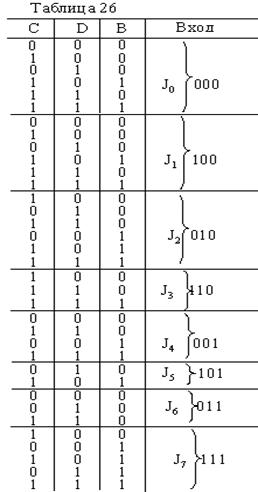 1. Составляется таблица истинности для трех переменных; определяется значение третьей переменной; берется аргумент или его отрицание или постоянные 0 или 1, которые должны быть поданы на входные шины.