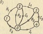 Пример. Построить ММС для схемы рис. 2.20, а, граф-схема которой приведен на рис. 2.20, б с помощью МПС в случае использования явных методов интегрирования.