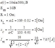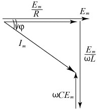 Объединим эти элементы в параллельную цепь и зададим ЭДС источника. Неизвестный ток этого источника найдём в виде i=Im sin(ωt – φ) (рис.4.2.)