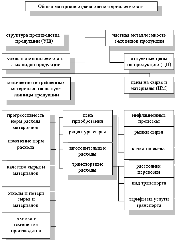 Рис. 5. Схема факторной системы материалоемкости