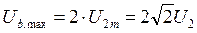 Максимальное обратное напряжение на диоде достигает удвоенной амплитуды значения напряжения вторичной обмотки