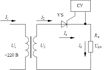 Рис. 15.4. Регулируемый однофазный однополупериодный выпрямитель