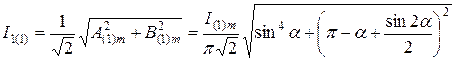 - амплитуда синусной составляющей первой гармоники разложения в ряд Фурье тока i 1.