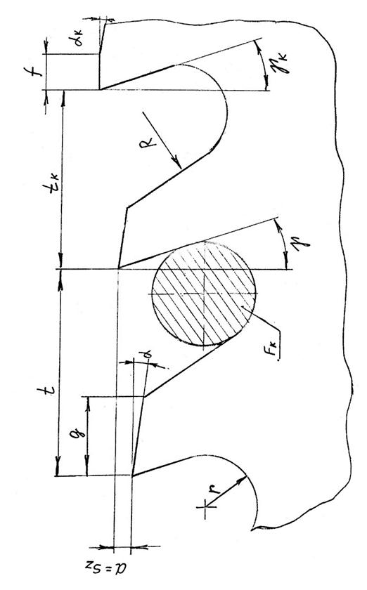 Элементы профиля зуба рассчитывают по условию свободного размещения стружки в активной площади впадины: FK ≥ FC ּк