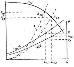 Предполагается при этом, что изменение характеристики сети в обоих вариантах равноценно. Рабочая точка на чистом воздухе Ач.в. При транспорте смеси рабочая точка Асм.. Если схема транспорта принята по варианту I, то мощность нагнетателя изменится и может быть изображена линией Nсм – Q, которая характеризует изменение мощности нагнетателя при перемещении смеси и проходит выше линии Nч.в. – Q.