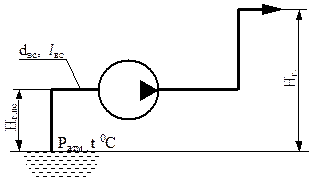 Рисунок 7.12. Расчетная схема для определения допустимой геометрической высоты всасывания насоса