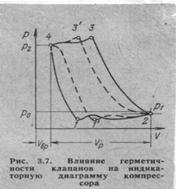 Рис. 8.10 Влияние герметичности клапанов на индикаторную диаграмму компрессора