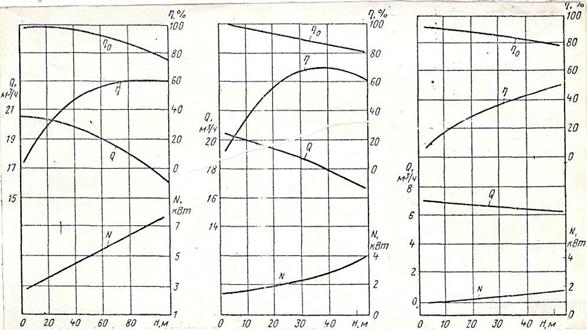 рис 9.2. Характеристики насосов 1В20/10 (а) 1В20/5 (б) и 1В6/5 (в)