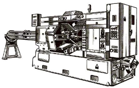 Рис. 6.2. Горизонтальный шестишпиндельный прутковый автомат