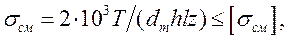 м; dm — средний диачетч соединения, мм: для прямобочного соединения dm = (D+ d)/2; для эвольвентного — dm = mz; h- рабочая высота зубьев, мм; l — рабочая длина соединения, мм: обычно l