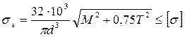 где d — диаметр вала, мм; М — наибольший изгибающий момент, Н • м; Т — наибольший вращающий момент, Н • м.