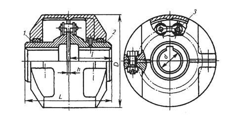 Цепная муфта. Упрощенной конструкцией зубчатых муфт являются цепные (рис.6.5), состоящие из двух полумуфт 1 и 2, замыкаемых бесконечной однорядной или двухрядной втулочно-роликовой цепью 3. Цепные муфты изготовляют по ГОСТ 20742—93 в диапазоне диаметров валов d = 20...100мм с номинальным вращающим моментом от 63 до 16000 Н.М. При использовании других материалов номинальный вращающий момент определяется расчетным путем.