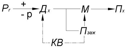 Для перемещения хобота сверловщик вручную (P r) включает (+) двигатель подъёма (опускания) хобота Дх, но подача хобота Пх начинается только после освобождения зажима хобота Пзаж на колонне, в конце которого движением разжима включается муфта М и начинается перемещение хобота. Для остановки хобота на нужной высоте сверловщик отпускает кнопку, при этом Дх не останавливается, а реверсируется (Р) (-), после чего в начале зажима хобота он через движение Пзаж выключает муфту М, а в конце движения зажима конечным выключателем КВ выключает сам себя. Перемещение шпинделя бабки по хоботу и поворот хобота выполняются вручную. Для обсверловки тяжёлых деталей применяются переносные радиально-сверлильные станки, перемещаемые краном. Они имеют поворот оси шпинделя на любой угол в двух плоскостях. (рис. 21.)