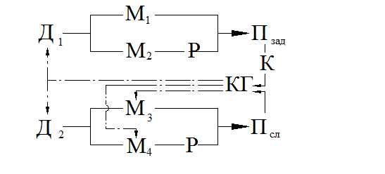через копир К, копировальную головку КГ и усилитель УС регулирует скорость и направление вращения электродвигателя