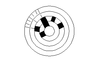 Каждое концентрическое кольцо стеклянного диска состоит из затемненных и прозрачных участков, которые не пропускают или пропускают свет на фотоприемники. Кольца соответствуют определенным разрядам: внешнее – первому, внутреннее – десятому. Диск устанавливается так, чтобы его полный оборот соответствовал перемещению рабочего органа на максимальную величину. При этом каждому положению рабочего органа соответствует единственная комбинация (кодовая).