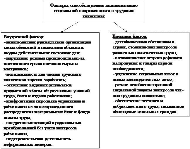 Выделяют две группы факторов, способствующих возникновению социальной напряженности в трудовом коллективе, см. Рис 10.