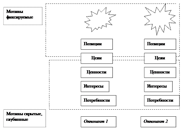 Мотивы сторон — это побуждения к вступлению в конфликт, связанные с удовлетворением потребностей оппонента; совокупность внешних и внутренних условий, вызывающих конфликтную активность субъекта.