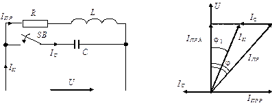 Таким образом, подключение конденсатора привело к разгрузке питающего кабеля от реактивного тока и повышению cosj электроустановки. Для полной компенсации реактивной мощности необходимо конденсатор выбрать таким образом, чтобы полностью компенсировать реактивную составляющую тока IПРР.