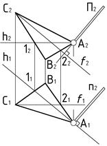 Понятно, что линия наибольшего наклона к фронтальной плоскости проекций перпендикулярна к фронталям заданной плоскости.
