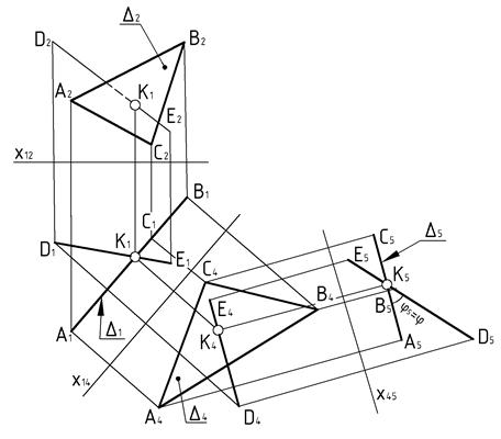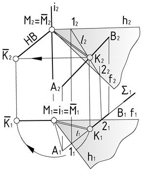 преобразовать в проецирующую прямую и использовать его вырожденную в точку проекцию. Для решения задачи потребуется две замены плоскостей проекций.