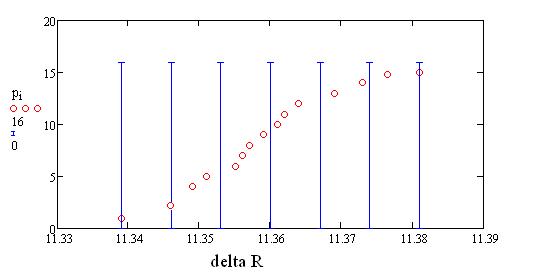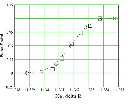 г) строим функции распределения: экспериментальную Fe (DRк) и теоретическую F(R) на одном графике