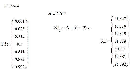 б) вычисляем: F ф = 0.5 + aф/2 = 0.75; Х ф(F ф) = 11.670; определяем допуски