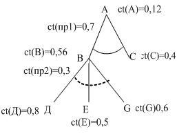 Лицо, принимающее решение, условиям (А, В, С), а также правилу присваивает коэффициент определенности от 0 до 1.