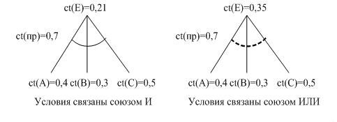 Для простого правила, содержащего лишь одно условие, например, ЕСЛИ Е, ТО С, коэффициент определенности для заключения С рассчитывается так: