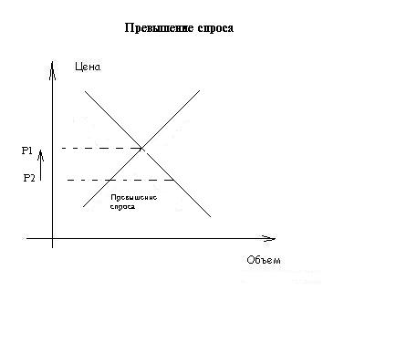 Если рыночная цена выше цены равновесия, то производители желают изготовить больше товаров, чем потребители хотят купить, возникает "превышение предложения", которое заставляет цену снижаться. Если же рыночная цена ниже цены равновесия, то потребители хотят покупать больше, чем производители желают производить. В этом случае возникает "превышение спроса", которое вызывает повышение цены.