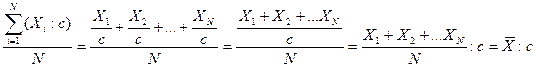 Вследствие этого свойства индивидуальные значения признака можно сократить в c раз, произвести расчет средней и результат умножить на c.