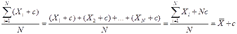 3. Если к каждому индивидуальному значению признака прибавить или из каждого значения вычесть постоянное число, то средняя величина возрастет или уменьшится на это же число. Доказательство: