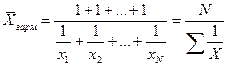Таким образом, средняя гармоническая взвешенная применяется тогда, когда неизвестны действительные веса f, а известно w=Xf. В тех случаях, когда вес каждого варианта w =1, то есть индивидуальные значения X встречаются по 1 разу, применяется формула средней гармонической простой (16):